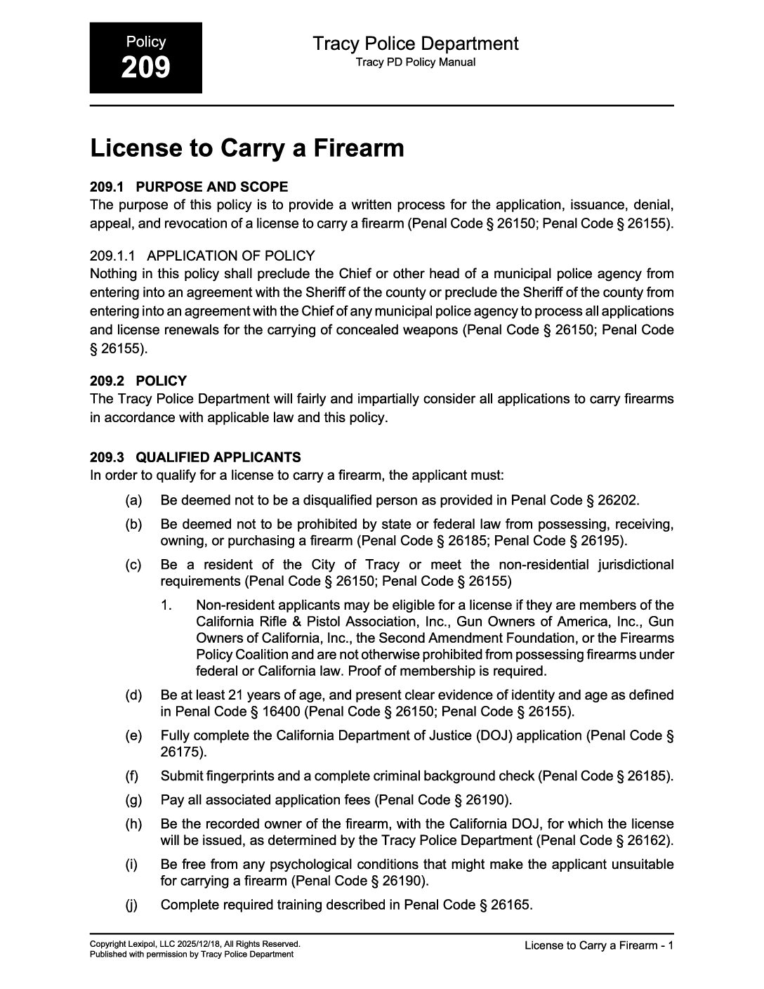 Document Library File TypeshtmlpdfwwwCategoryAnimal ServicesCCWCommunity PolicingEvidence and PropertyFamiliar FacesPart 1 Crime ComparisonsPermits and LicensingPolicies and Legal MandatesReportsVehicles and Traffic RelatedReset www Permits and Licensing Palmistry Permit Application pdf Part 1 Crime Comparisons December 2025 to January 2026 www Community Policing No Trespassing Enforcement Request pdf Part 1 Crime Comparisons November 2025 to December 2025 pdf CCW, Policies and Legal Mandates Tracy PD CCW Lexipol Policy pdf Part 1 Crime Comparisons October 2025 to November 2025 pdf Permits and Licensing Application for Massage Establishment Permit pdf Part 1 Crime Comparisons September 2025 to October 2025 pdf Part 1 Crime Comparisons August 2025 to September 2025 www Vehicles and Traffic Related Application for Rotation Towing Service Operator pdf Part 1 Crime Comparisons July 2025 to August 2025 www Vehicles and Traffic Related Request For Review of Parking Citation www Permits and Licensing Card Room Dealer Work Permit www Permits and Licensing Card Room Application www Permits and Licensing Towing Service Attendant Application www Permits and Licensing Taxi Driver Work Permit Application www Permits and Licensing Bingo Game Application pdf Part 1 Crime Comparisons June 2025 to July 2025 pdf Part 1 Crime Comparisons May 2025 to June 2025 pdf Part 1 Crime Comparisons April 2025 to May 2025 pdf Part 1 Crime Comparisons March 2025 to April 2025 pdf Reports Request for Report pdf Part 1 Crime Comparisons February 2025 to March 2025 pdf Part 1 Crime Comparisons January 2025 to February 2025 pdf Part 1 Crime Comparisons December 2024 to January 2025