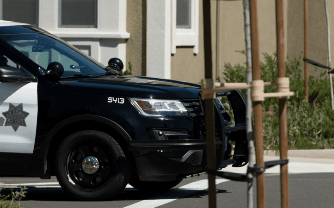 tracy police patrol vehicle in a residential neighborhood